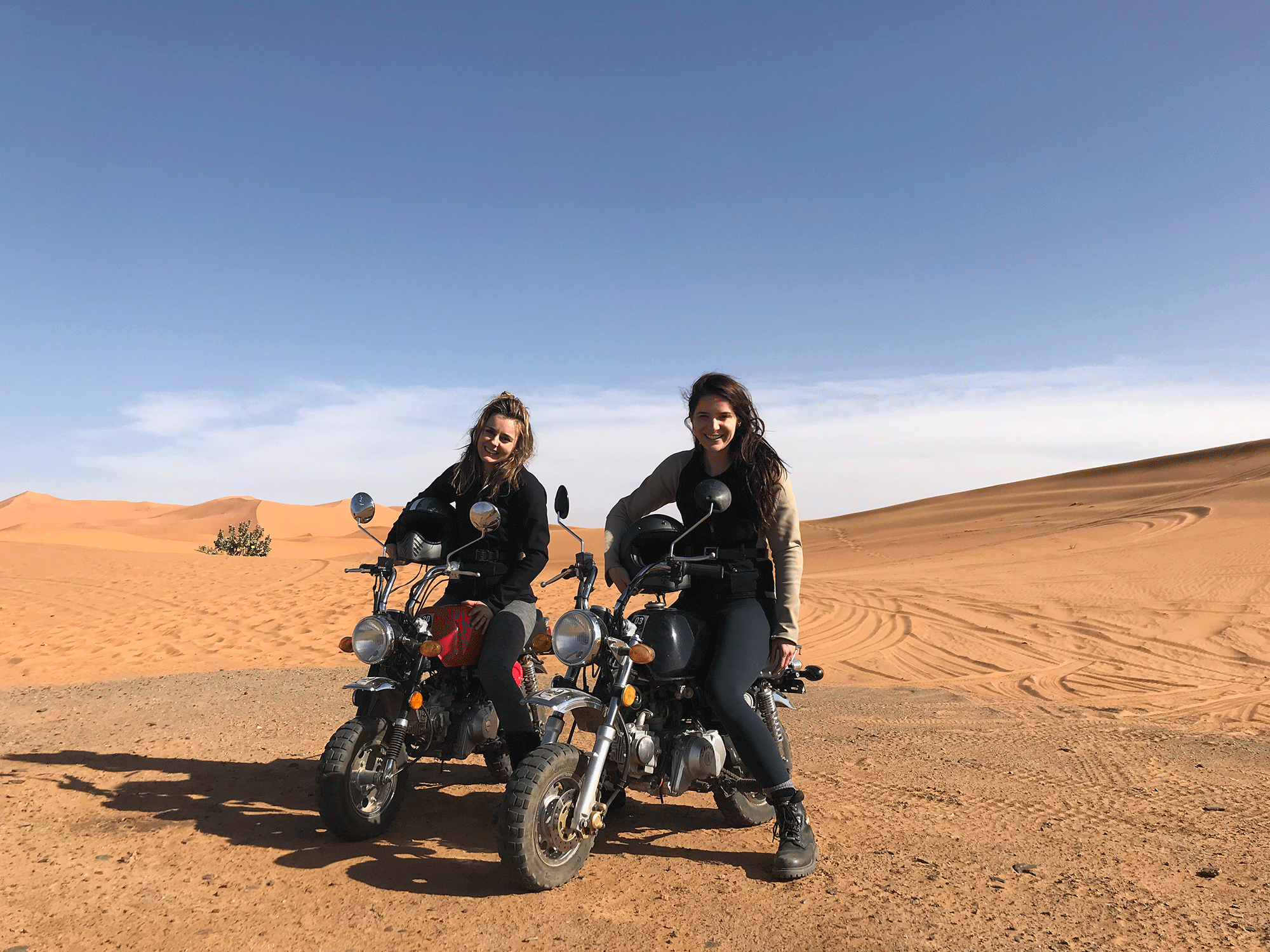 With its endless sun-drenched horizons, labyrinth-charged Medinas and sea of scarlet dunes, Morocco is a country that continues to incite wanderlust and demand exploration. Unless you happen to have a vagina, apparently. Despite Elspeth Beard circumnavigating the globe on a motorcycle – yes, all by herself – back in 1982, the biggest hurdle Georgia Maguire (pictured above, left) and Molly Beucher (above, right) faced before tackling the Sahara desert on monkey bikes (that's smaller-than-your-average motorcycles to you and me) wasn’t mapping out the route or overcoming their zero mechanical know-how. It was gender discrimination.